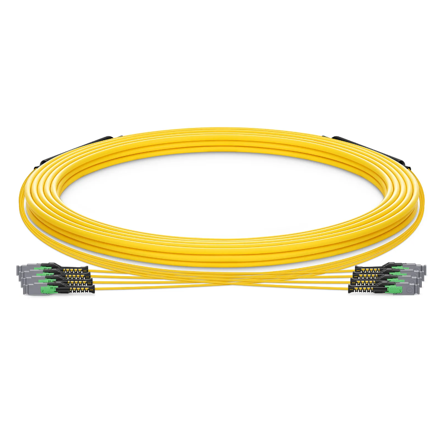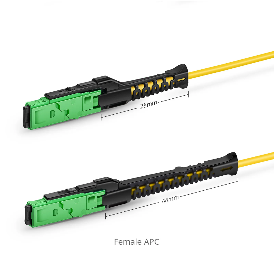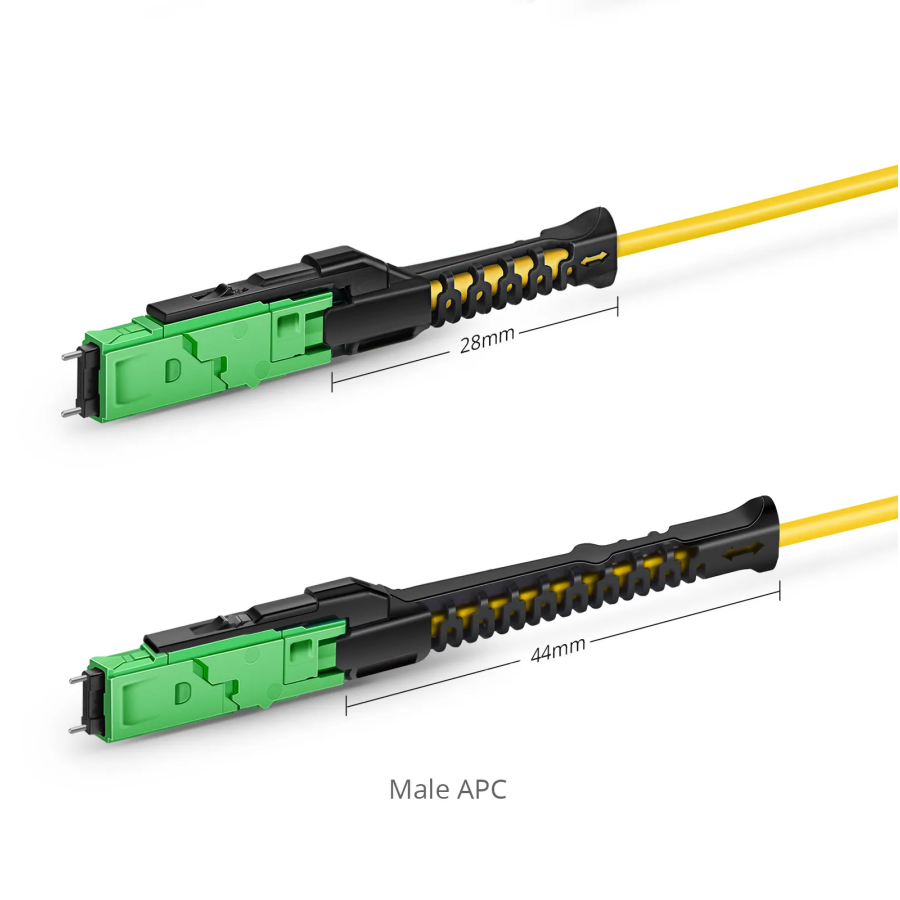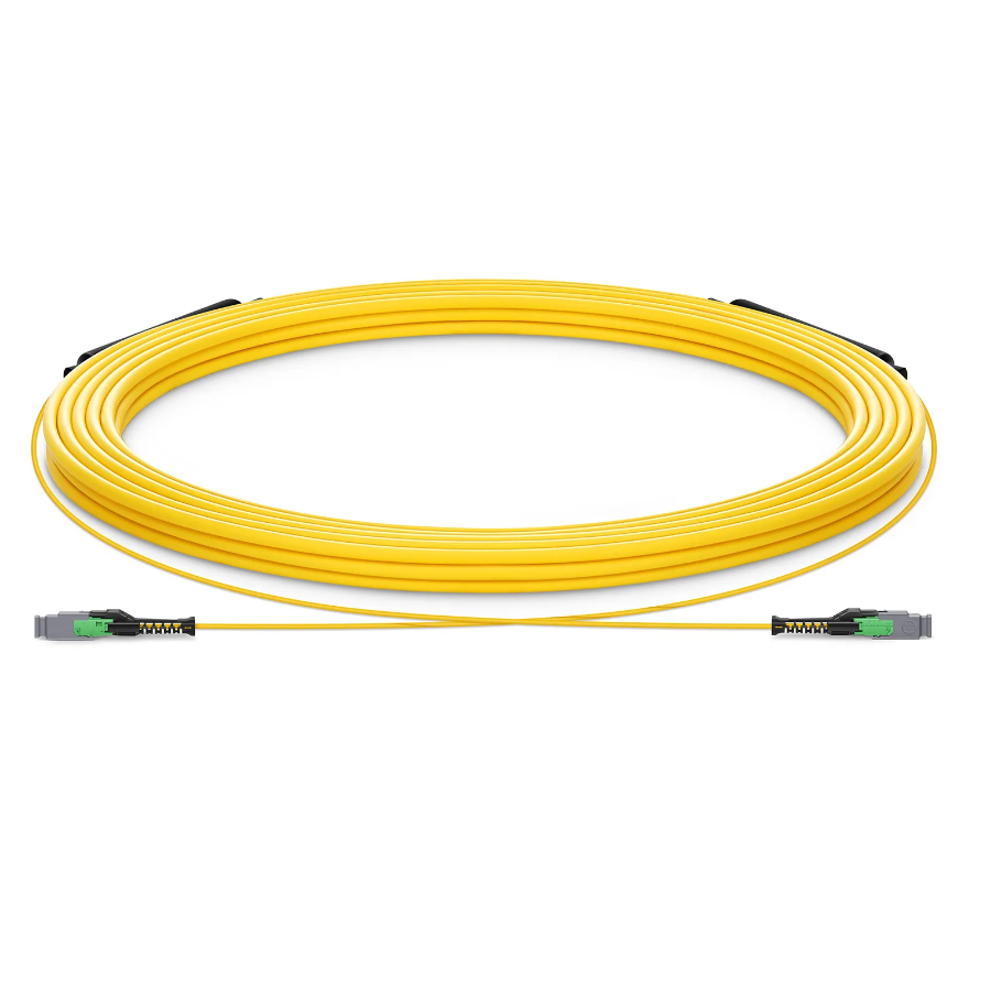 The MMC fiber cable is equipped with an MMC connector, a Very Small Form Factor (VSFF) multi-fiber optical connector designed to terminate single-mode and multimode fiber cables up to 2.5mm in diameter. It employs novel TMT ferrule technology harmonized with the MT/MT-16 alignment structure. Individual connector access in the most extremely dense connector environments is easily accomplished using revolutionary DirectConec™ push-pull boot technology.